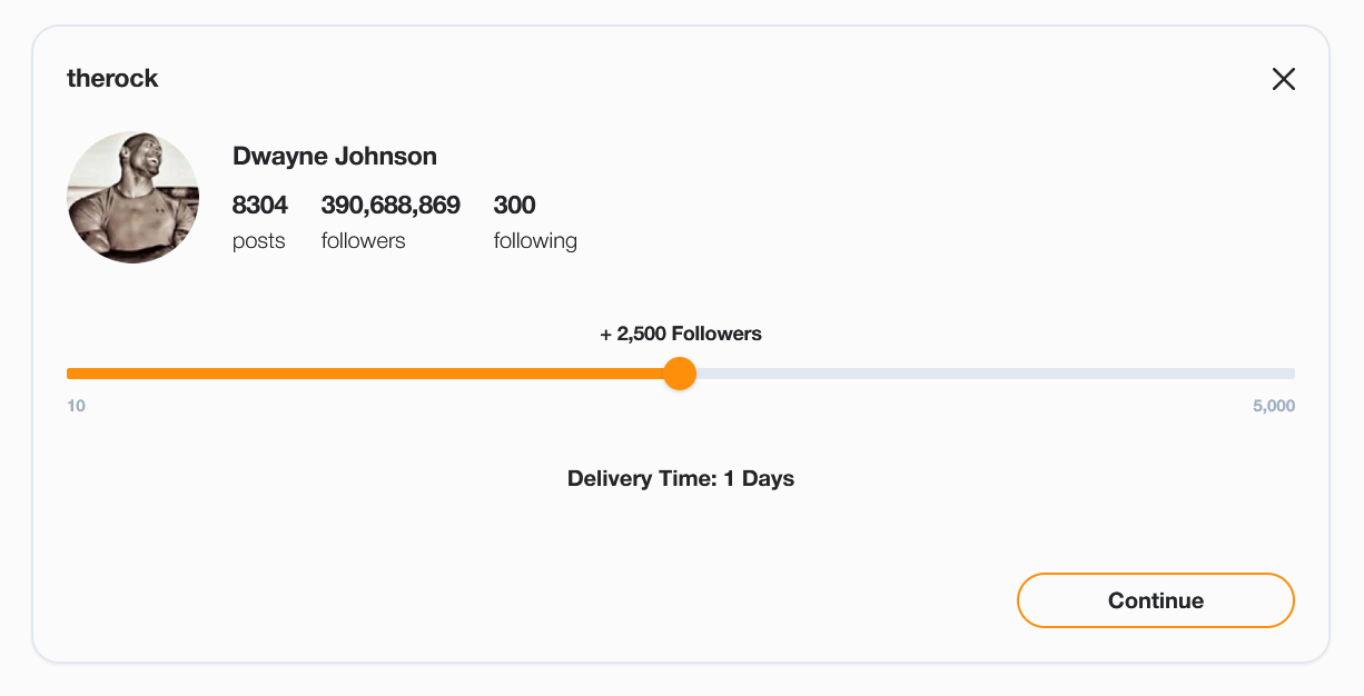 Pro Tip: Larger amounts of followers will have a longer delivery time.